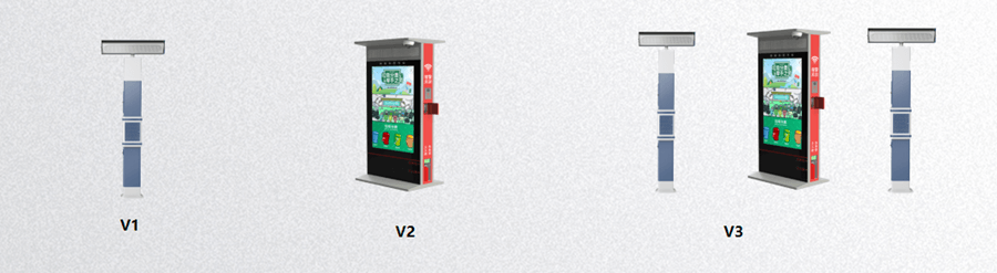 V2 :为一台户外多功能显示终端,在设备顶部安装集成清听声学专为广场舞等群众活动设计的数字导向型环保扬声器阵列,在设备侧面,嵌入设计多功能触控屏,给用户操作设备使用。